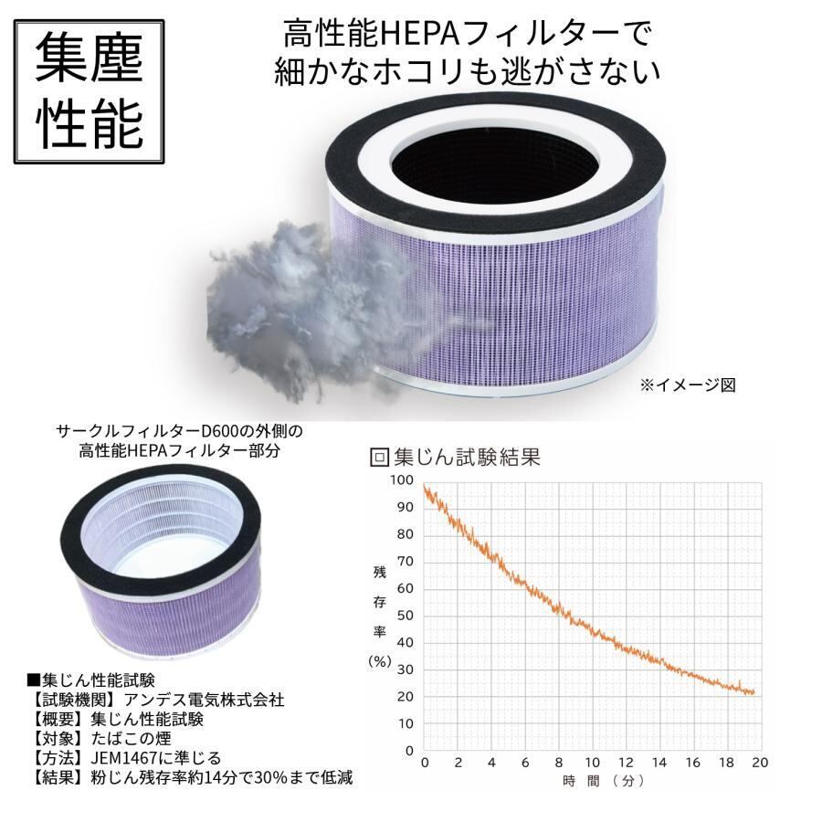 ・集塵方式:超高性能HEPAフィルター(サークルフィルターD600)